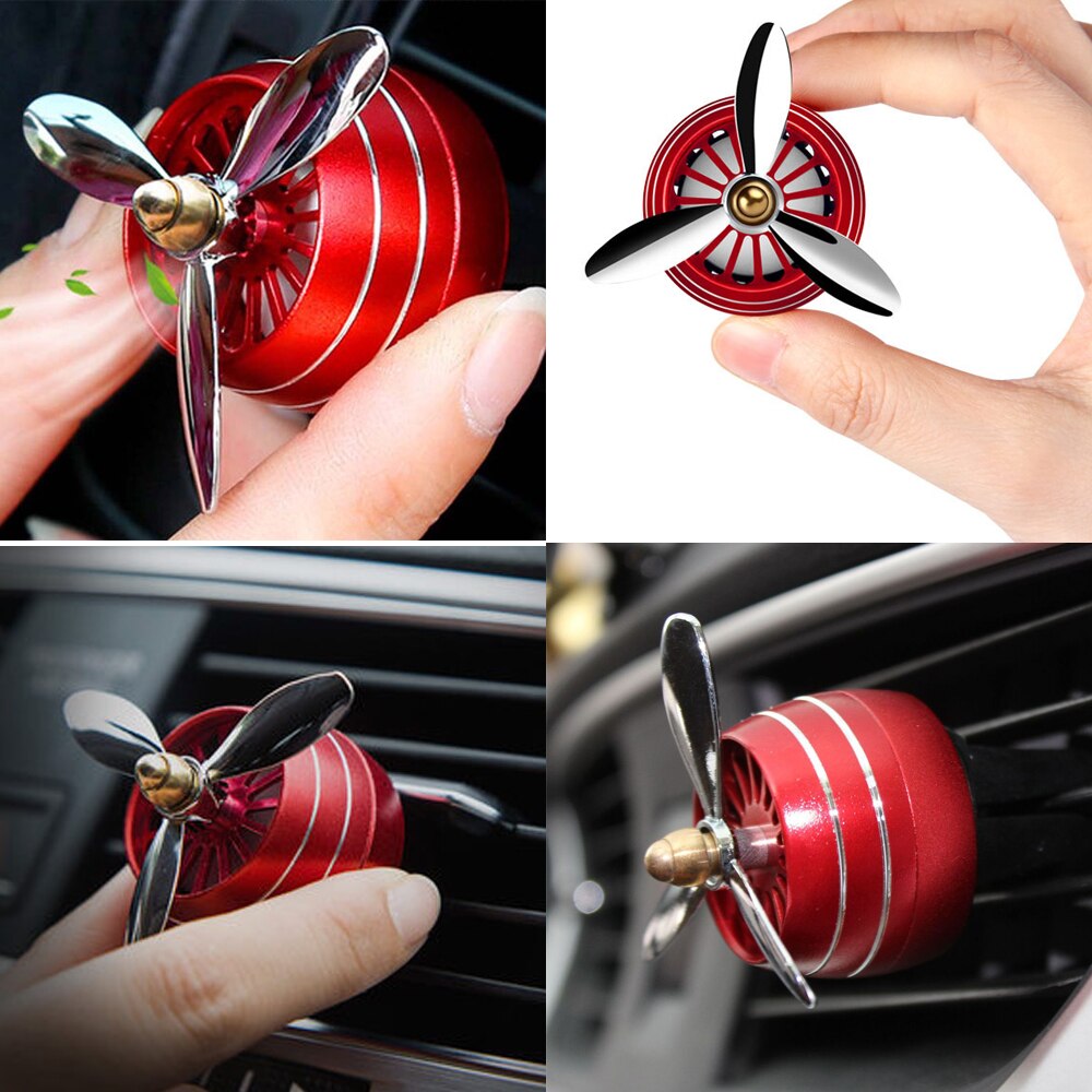 Name: Car Air Freshener Material: ABS + Alloy Color: Black, Blue, Silver, Red, Gold Suitable: Universal For All The Cars Feafure: 1. Easily remove all kinds of odors that make your car more Refreshing. 2. Fresh small, A variety of colors for you to choose, such as red, black, silver. 3. More safety. The fan is in inside that will not hurt you. 4. Alloy production. Small wind can also rotate. 5. with LED Atmosphere light Note: The pictures are for reference only. The actual product shall prevail.Your satisfaction is our utmost concern. Please contact us to better resolve any issue before leaving any neutral or negative feedback.Thanks a lot! Package: Perfume clip x 1 ( with Fragrant Sheet x 1 ) or Fragrant sheet 5pcs