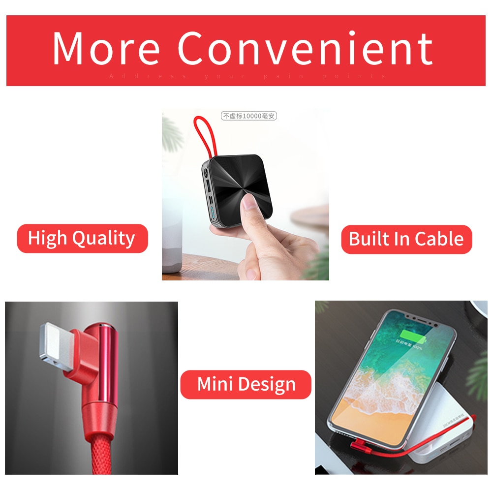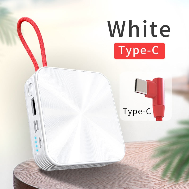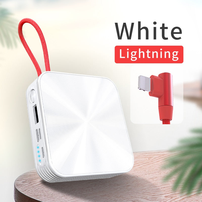 Portable Charger Slim Power bank With Cable White Black Powerbank External Battery Charger For Iphone Samsung A5