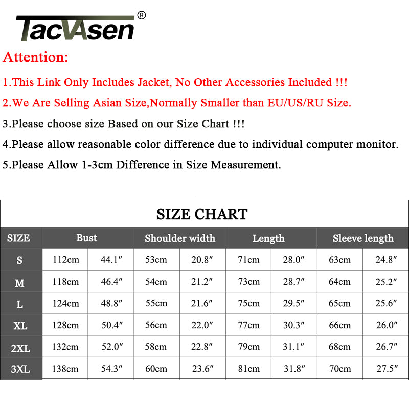 1.Only for reference;please see following detail measure size table, Choose Jacket size as Height, Weight, Shoulder,Sleeve,Bust,Length.