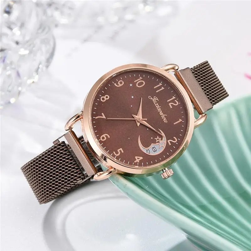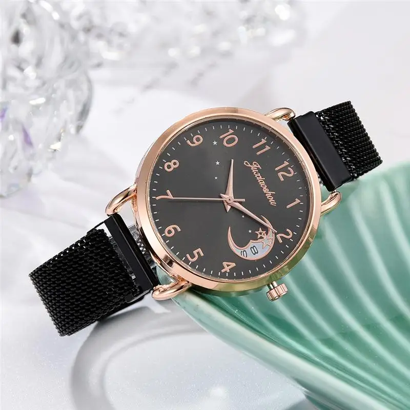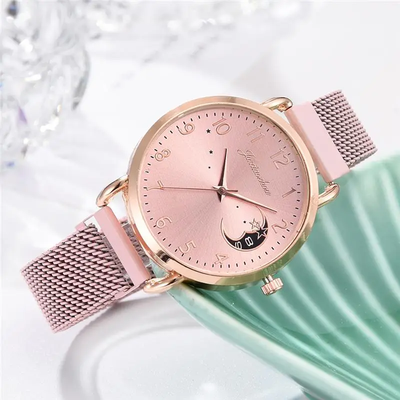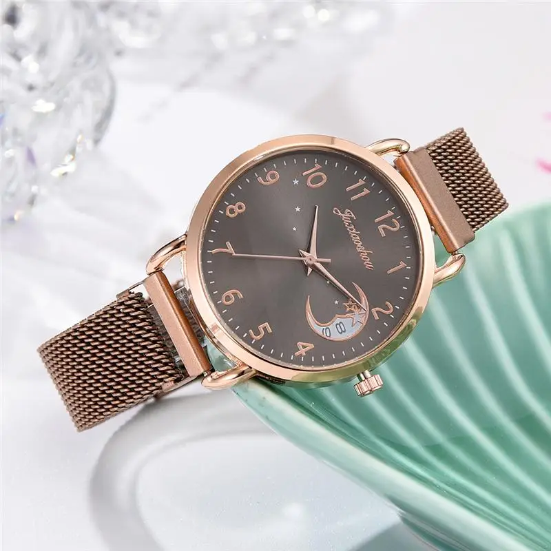 Rose Gold Mesh Strap Women's Fashion Watches Simple Numbers Dial Luxury Quartz Watch Women Clock Rose Gold Pointer Wristwatches