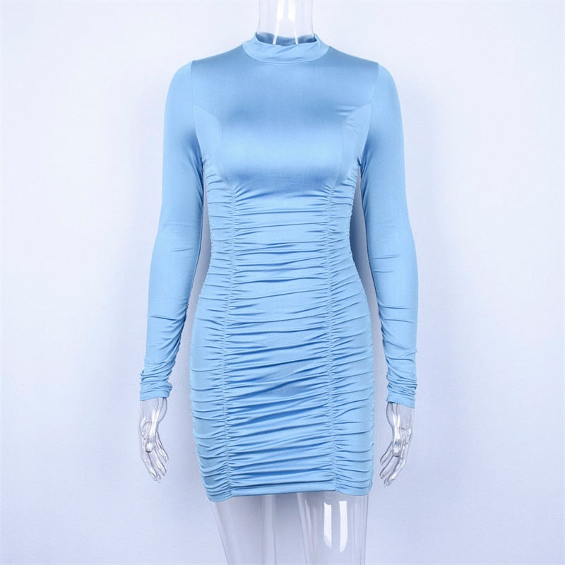 Hugcitar satin long sleeve high neck high waist bodycon sexy mini dress 2019 autumn winter women fashion party elegant clothes
